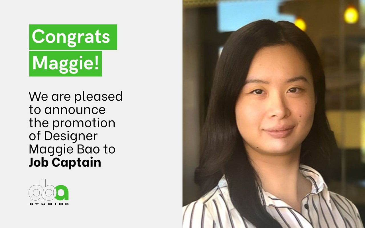 We’re thrilled to share that Maggie Bao has been promoted to Job Captain at ABA Studios.